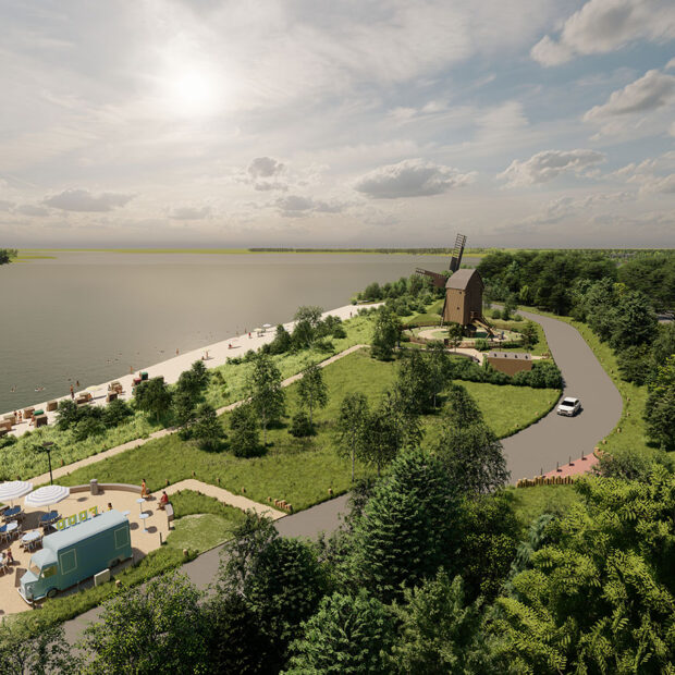 Die Herstellung des Strandresorts „Löbnitzer Bucht“ stellt eine Kombination aus öffentlichen und privaten Nutzungen dar. Für die Öffentlichkeit werden eine ausgedehnte Strandlandschaft mit gut 20.000 Quadratmetern Sandstrand einschließlich wind- und sichtgeschützter Ruhebereiche sowie eine Fläche zur Aufstellung der Löbnitzer Bockwindmühle „Döbler“ aus dem Jahre 1760 geschaffen. Zusätzlich werden im Bereich der Zentralgebäude des Resorts (Arbeitstitel: „Markt“) der örtlichen Öffentlichkeit sowie Tagestouristen diverse Dienstleistungen in öffentlich zugänglichen Gebäuden angeboten. Wasserseitig sollen in einem späteren Bauabschnitt neben schwimmenden Ferienhäusern ein öffentlicher Steg mit Aussichtsplattform sowie ein begehbarer Wellenbrecher mit einer Leuchtturm-Miniatur entstehen. Ob es zusätzlich noch eine Sportboot-Marina geben wird, soll sich an der Nachfrage orientieren.